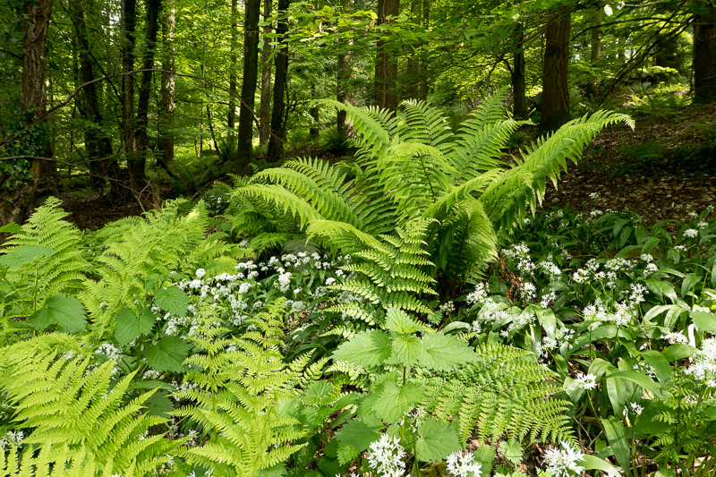 Ramsons (Wild Garlic) and Lady Ferns carpeting the woodland floor.