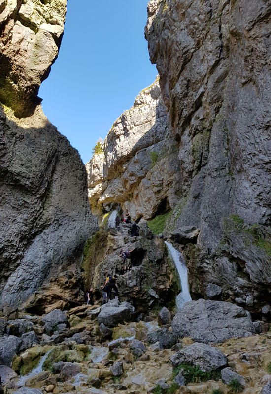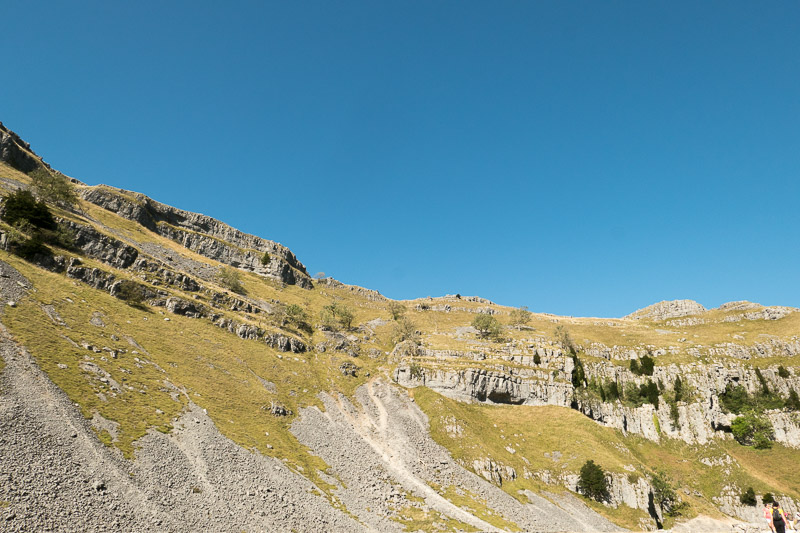 Following a walk over the limestone pavement we took the tourist trail down to Gordale Scar. Note the steepness of the scree to the left.