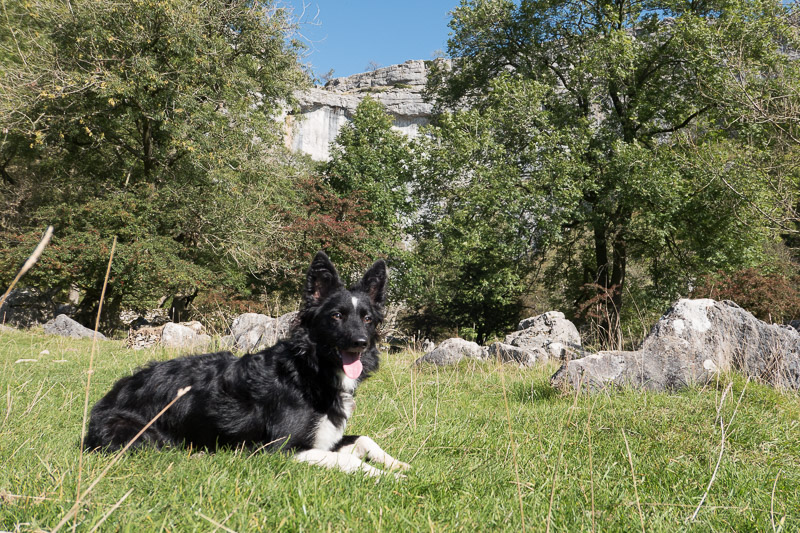 Whilst the idea had been to scramble up the waterfall and head up towards Malham Tarn it soon became clear it wasn’t the most dog friendly route. After briefly considering popping Meghan in a rucksack we decided a scramble up the scree was a better option.