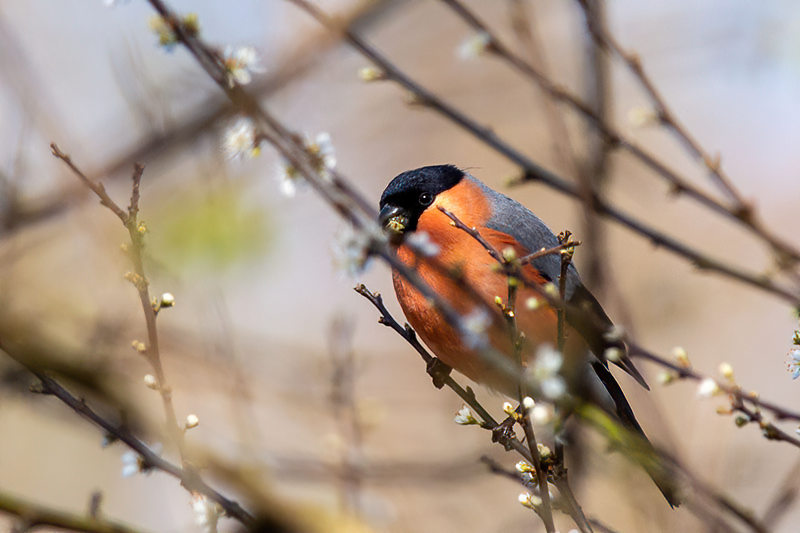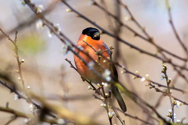 Bullfinch (male) enjoying a few buds from the Blackthorn