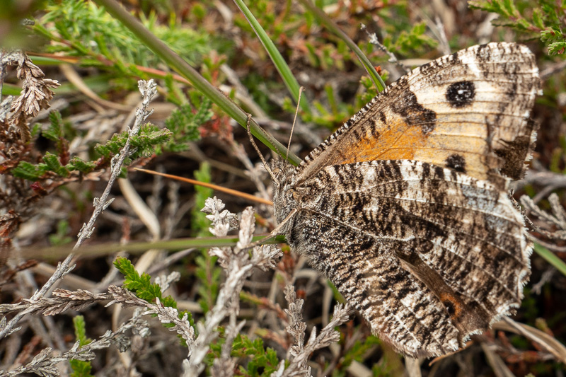 Hidden amongst the heath we were also fortunate to find a few female Graylings. To be honest they’d have probably remained hidden if we hadn’t been keeping an eye out for Sand Lizards. With the females having no need to fly around and defend a territory they’re superbly camouflaged. In contrast to the males the underwing of the females lacks the distinctive white band.